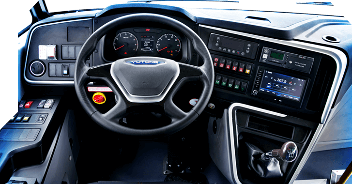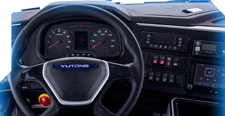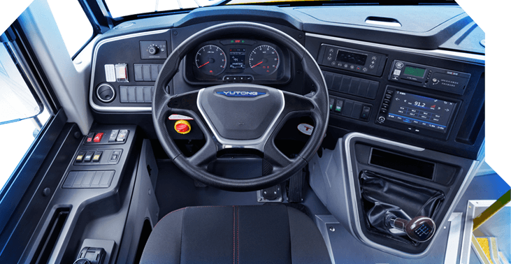 方向盘,尺寸及内部曲线优化,更加贴合转向时手部操作。全新设计环抱式仪表台,常用按键触手可及。乘用车化组合仪表,方便驾驶员读取行车信息,防炫目设计,强光环境下仪表信息的读取不受影响。 乘用车化组合开关,将灯光控制功能、缓速器开关统一集成在组合开关手柄上,仪表台中央搭配7寸集成中控触摸屏,实现多项功能集成,驾驶员操作更方便。